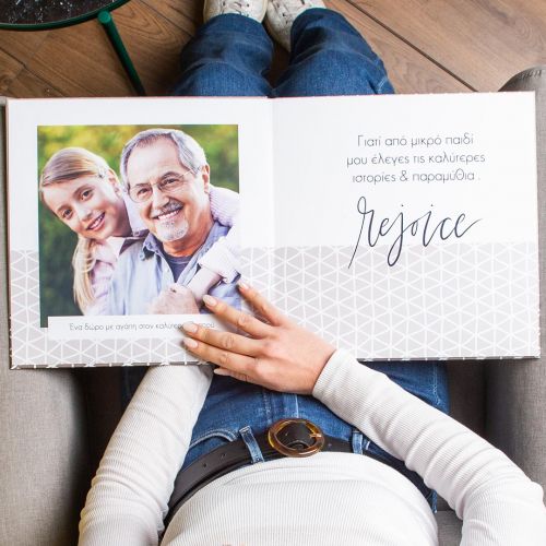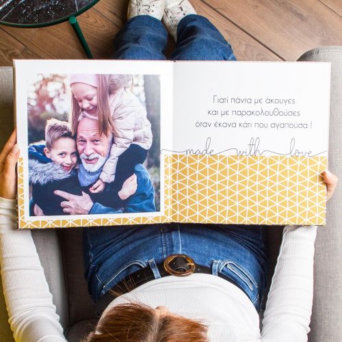 Το photobook συγκεντρώνει τις πιο πολύτιμες αναμνήσεις που κρατούν ζωντανή την ιστορία της οικογένειας. Μέσα σε κάθε σελίδα μπορεί να κρύβεται μια ξεχωριστή στιγμή, μια αφιέρωση ή ένα μικρό κείμενο που θα συγκινήσει βαθιά τη γιαγιά και τον παππού. Πρόκειται για το δώρο που δίνει την ευκαιρία στον παππού και τη γιαγιά, να θυμηθούν στιγμές και να μοιραστούν συναισθήματα με τα εγγόνια τους. Είναι μια κληρονομιά που θα διαβάζετε ξανά και ξανά, διατηρώντας ζωντανή τη σύνδεση ανάμεσα στις γενιές.