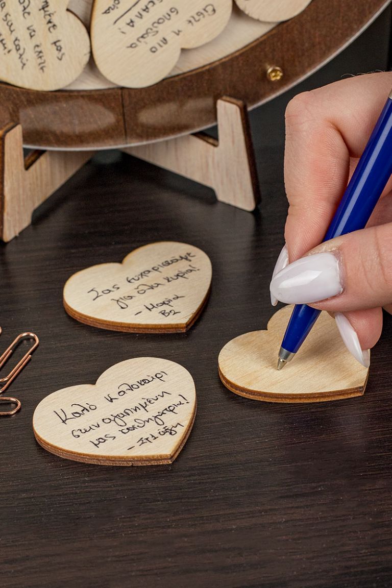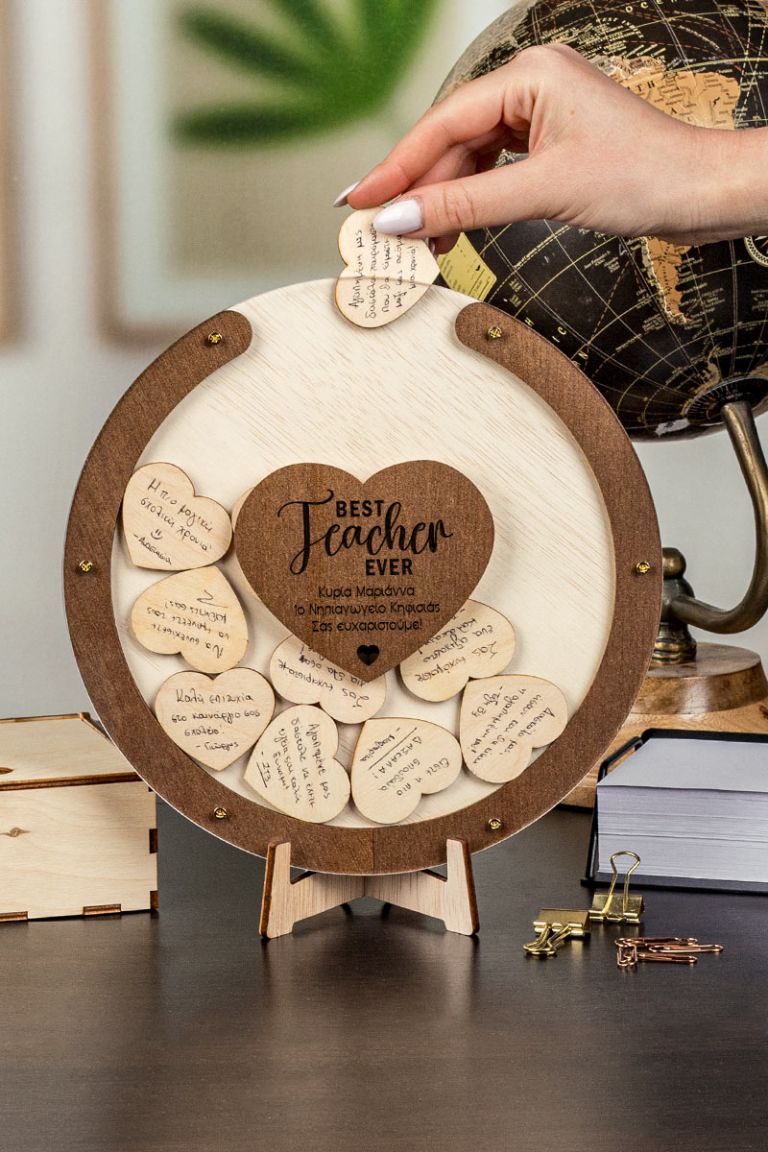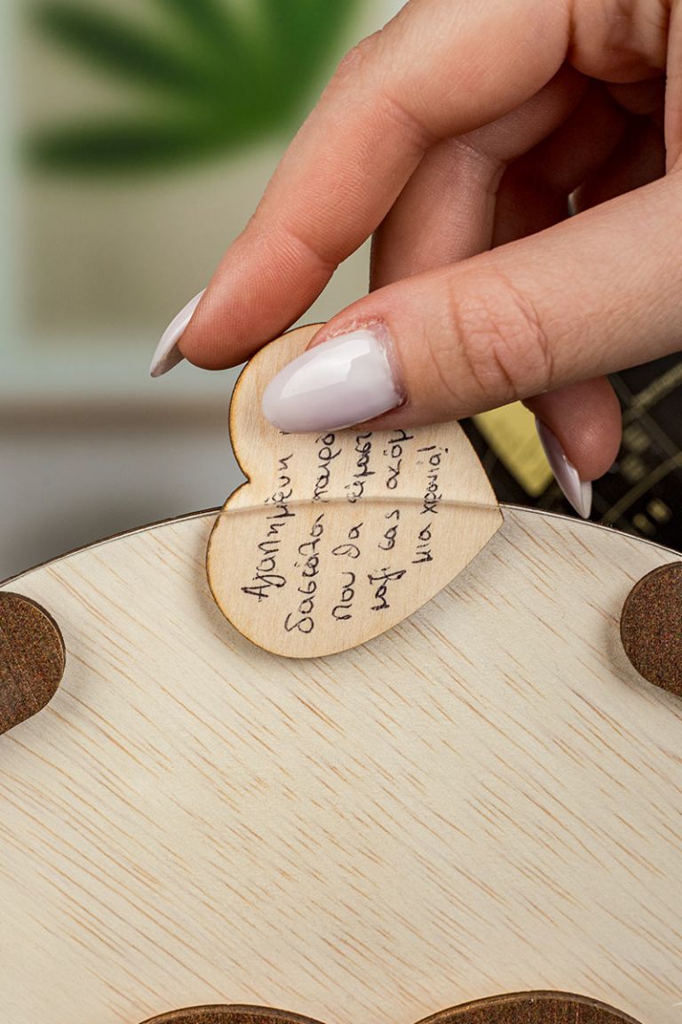 Η ξύλινη κατασκευή λειτουργεί όπως ένας “κουμπαράς ευχών”. Προσωποποιήστε το ευχολόγιο με όνομα και ευχές / τάξη / σχολείο .