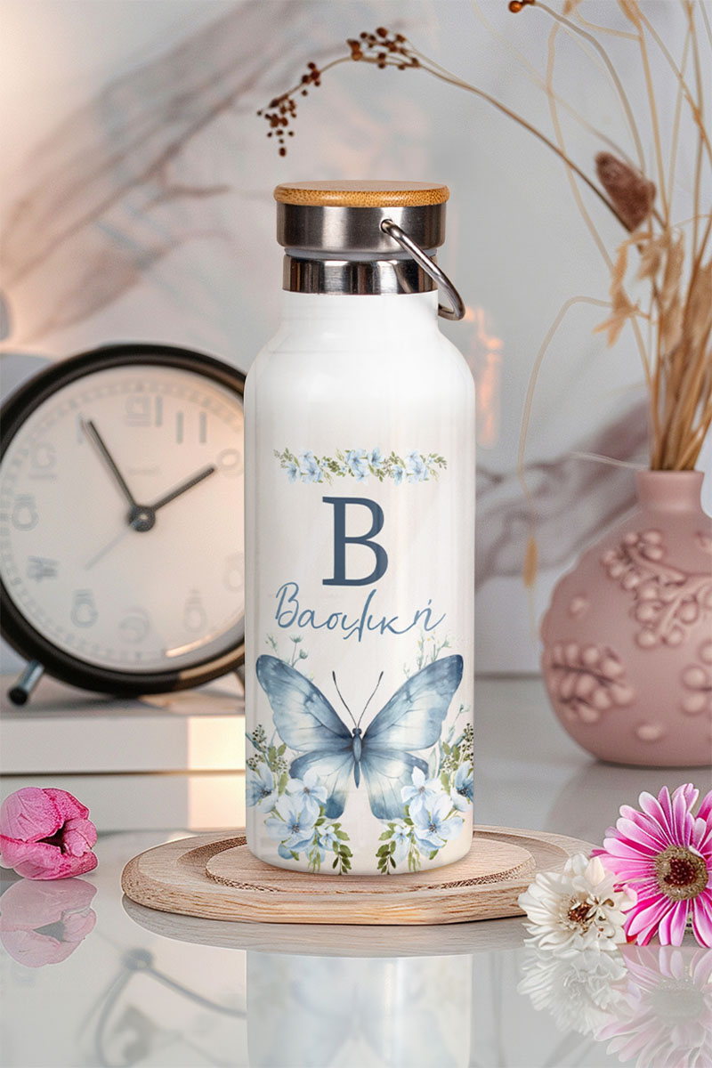 Ανοξείδωτo Μπουκάλι Θερμός με Σχέδιο Πεταλούδα & Λουλούδια