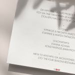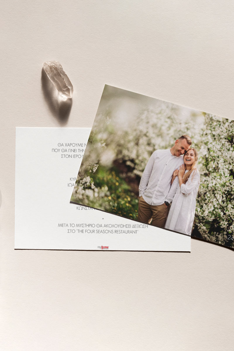 Αποκτήστε τα προσκλητήρια γάμου με σχέδιο Minimal Elegance. Οι πελάτες μας τα ξεχωρίζουν για το υψηλής ποιότητας ιταλικό χαρτί και την εκτύπωση υψηλής ευκρίνειας Myikona High Definition. Διαθέσιμα σε διαφορετικές διαστάσεις.
