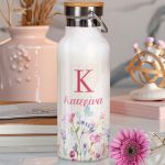 Μπουκάλι Θερμός Ανοξείδωτo με Όνομα & Σχέδιο Λουλούδια