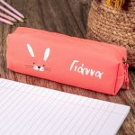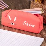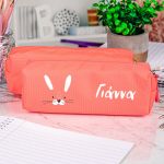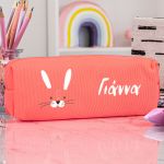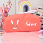 Σχολική Κασετίνα με Όνομα, σε Κοραλί Χρώμα & Σχέδιο Bunny Face