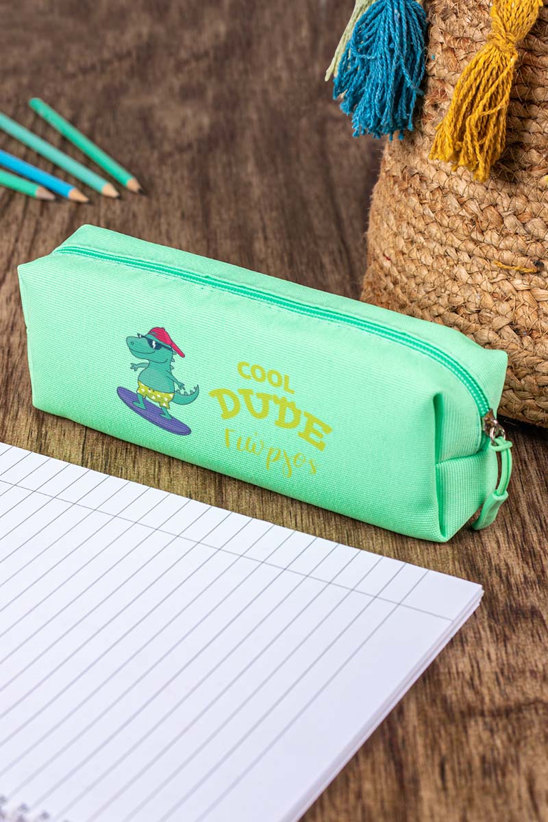 Σχολική Κασετίνα με Όνομα, σε Πετρόλ Χρώμα & Σχέδιο Cool Dude