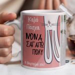 Εάν ψάχνετε ένα μοναδικό πασχαλινό δώρο, για την νονά , τον νονό , την θεία , τον θείο , την γιαγιά ή τον παππού  δημιουργήστε και χαρίστε του μία προσωποποιημένη κούπα & λάβετε πίσω τον ενθουσιασμό και την αγάπη του! Όποιος κι αν είναι ο αποδέκτης θα λατρέψει την ιδέα του ότι δημιουργήσατε κάτι μοναδικό, αποκλειστικά γι΄ αυτόν !