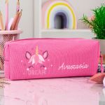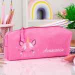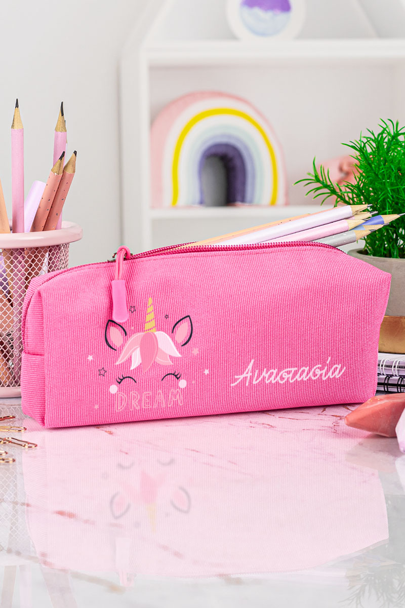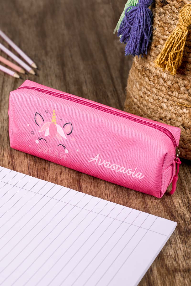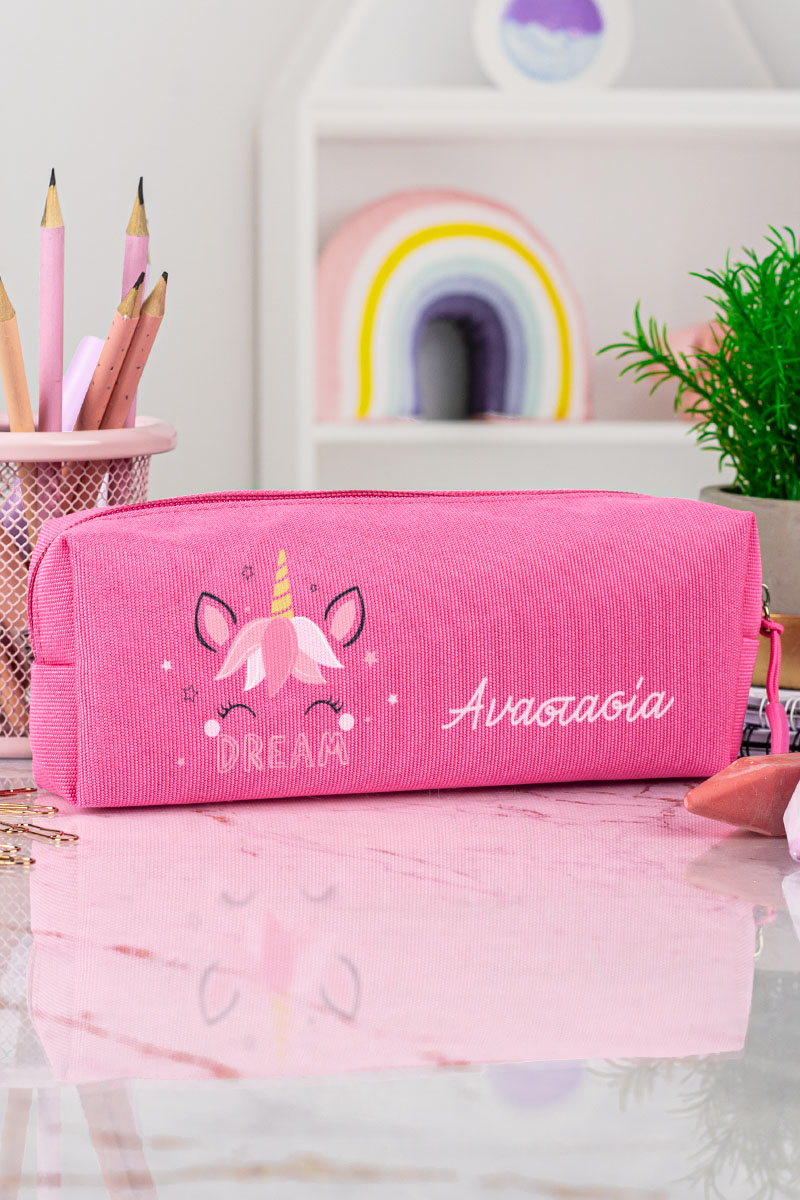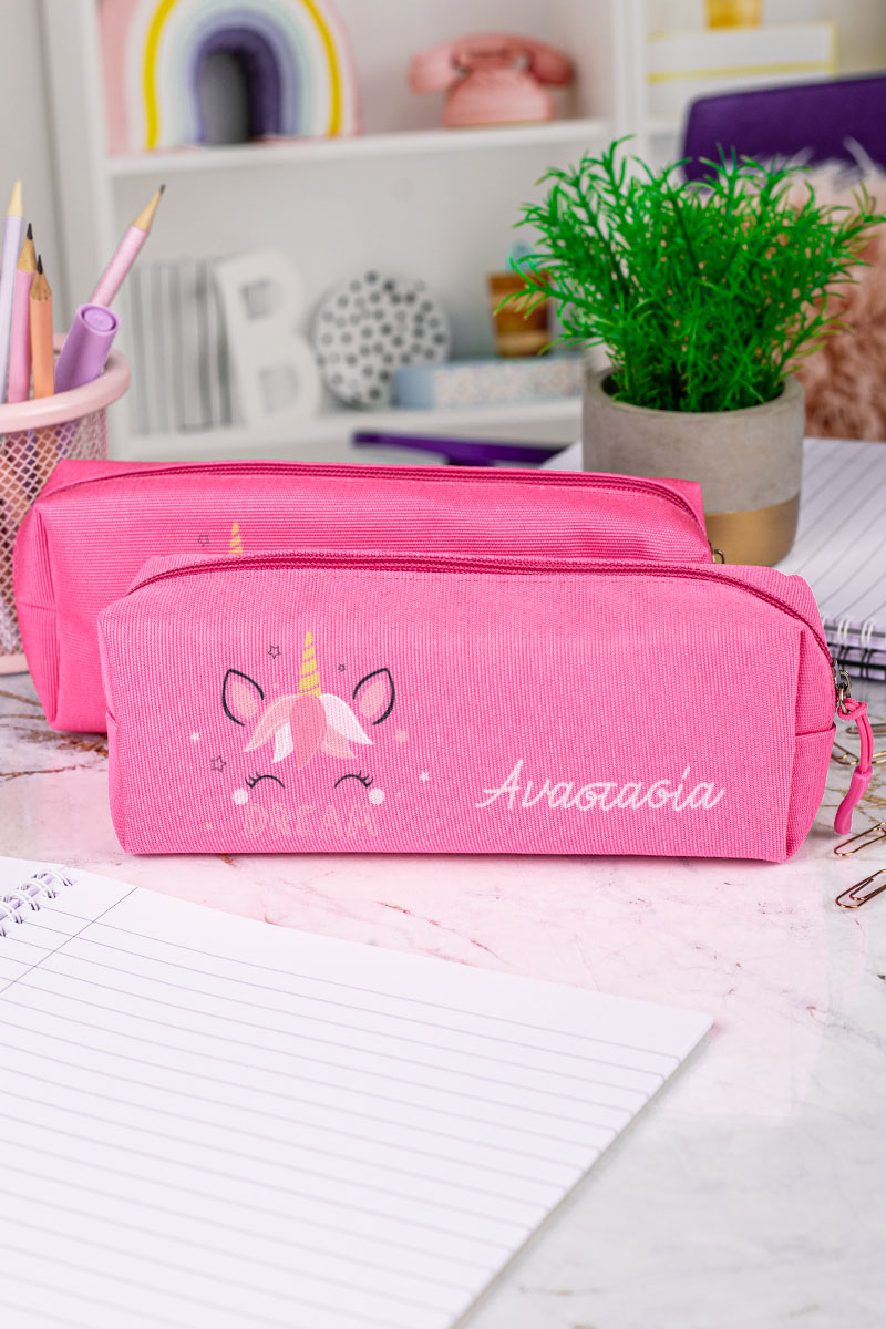 Σχολική Κασετίνα με Όνομα, σε Φούξια Χρώμα & Σχέδιο Dream Unicorn