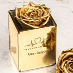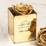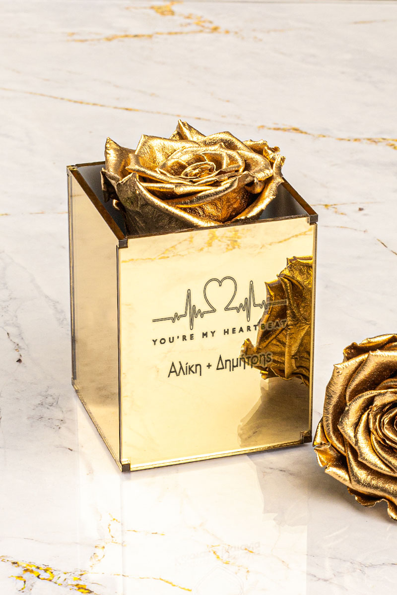 Premium Τριαντάφυλλα Forever, αποχυμωμένα που διαρκούν 3-5 χρόνια & Μπρελόκ golden mirror. Προσωποποίησέ τα με φωτογραφίες, ονόματα, μονογράμματα, ημερομηνία ή με ένα κρυφό μήνυμα. Θα τα λατρέψει!