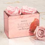 Premium Τριαντάφυλλα Forever, αποχυμωμένα που διαρκούν 3-5 χρόνια & Μπρελόκ golden mirror. Προσωποποίησέ τα με φωτογραφίες, ονόματα, μονογράμματα, ημερομηνία ή με ένα κρυφό μήνυμα. Θα τα λατρέψει!