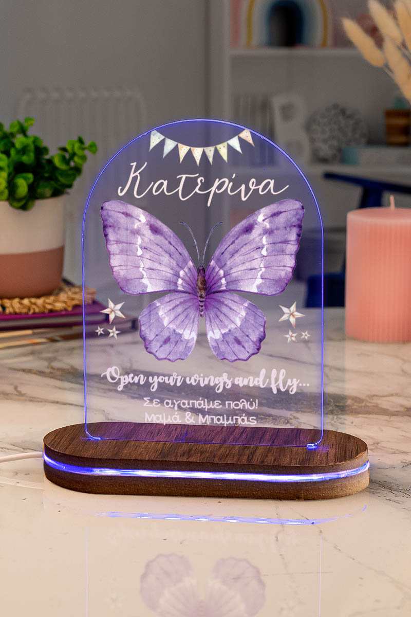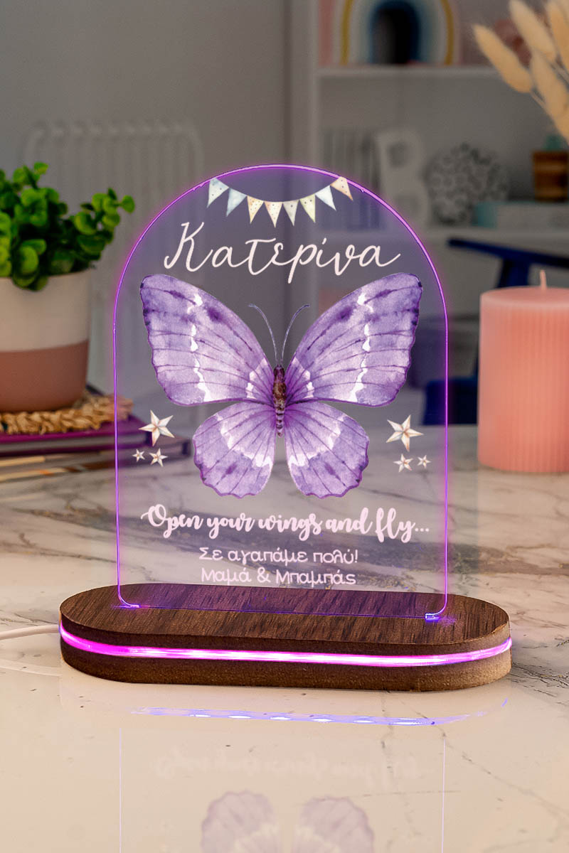 Premium φωτιστικό Led με επιλογή 7 χρωμάτων, προσωποποίηση και σχέδιο Πεταλούδα Και Αστέρια. Χάρισε ένα μοναδικό δώρο που θα λατρέψει κάθε παιδί!