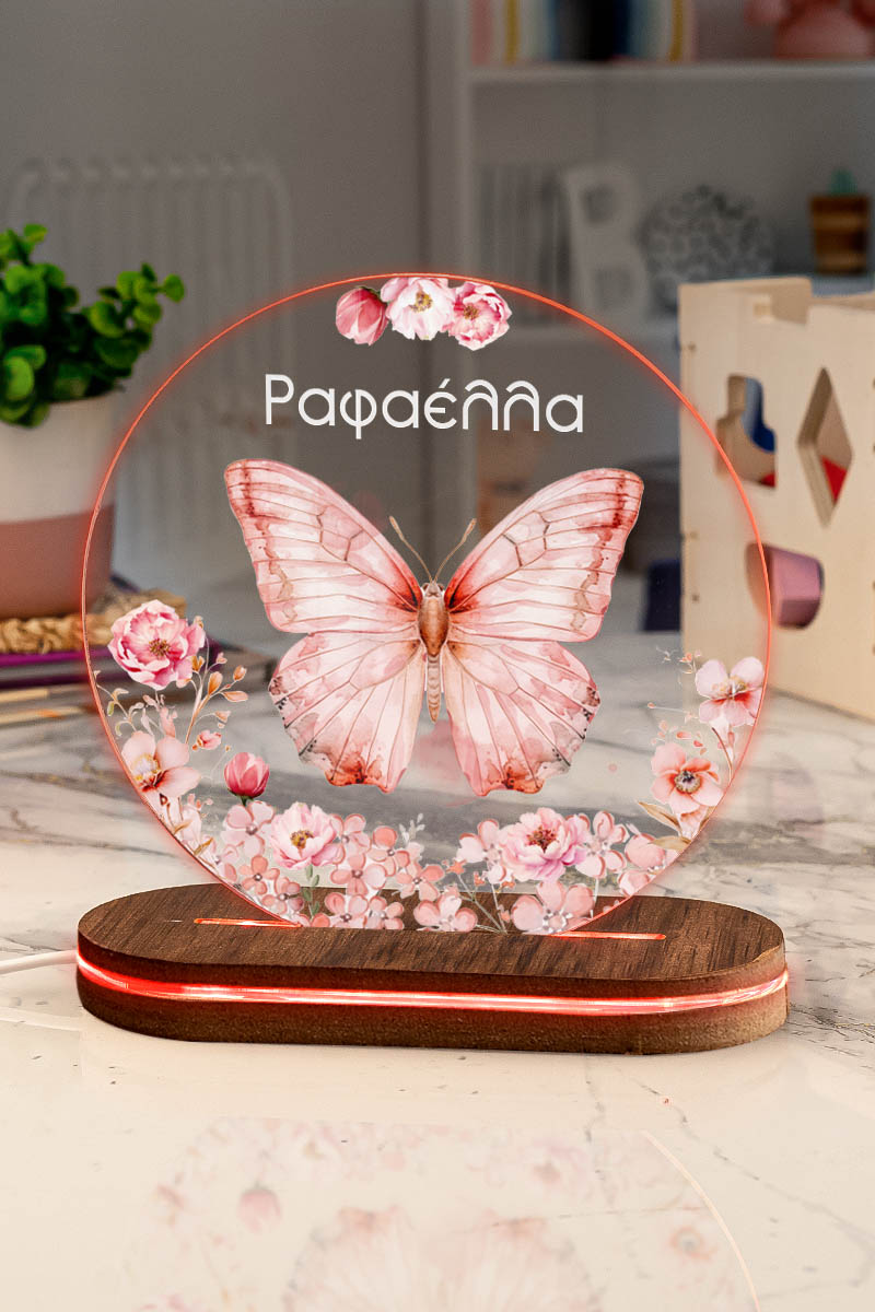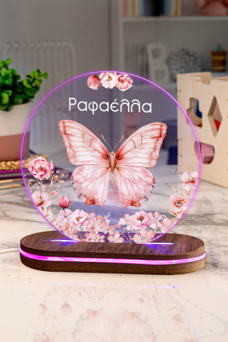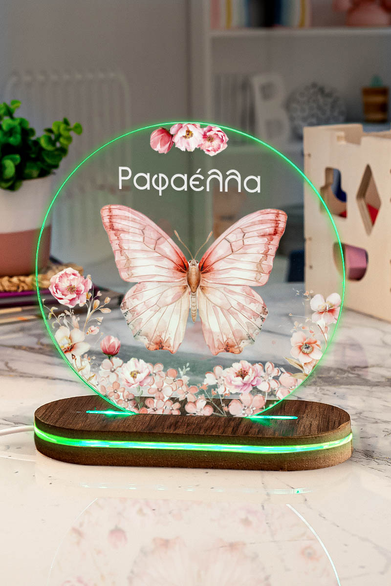 Premium φωτιστικό Led με επιλογή 7 χρωμάτων, προσωποποίηση και σχέδιο Πεταλούδα Και Λουλούδια. Χάρισε ένα μοναδικό δώρο που θα λατρέψει κάθε παιδί!