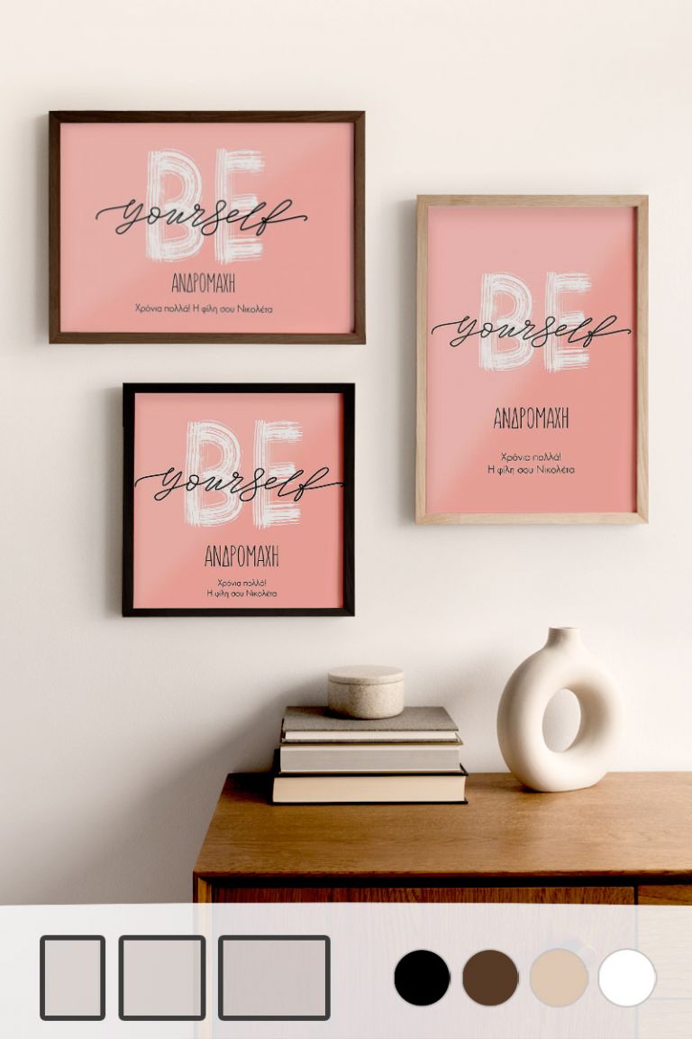 Κάνουμε πιο εύκολο από ποτέ τον τρόπο με τον οποίο μπορείτε να δημιουργήσετε online τα δικά σας έργα τέχνης. Προσθέστε στις κορνίζες σας μονογράμματα, κείμενα, λεζάντες και πολλά άλλα. Σε λίγα λεπτά, μπορείτε να παραγγείλετε ένα έργο τέχνης που θα μετατρέψει έναν συνηθισμένο τοίχο στο σημείο εστίασης οποιουδήποτε δωματίου. Μπορείτε να δημιουργήσετε κορνίζες με τις καθημερινές σας στιγμές, το Γάμο σας, τη Βάπτιση του παιδιού σας, τα ταξίδια σας, τις διακοπές σας, τις σημαντικές στιγμές σας και πολλά άλλα.