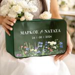 Το κουτί ευχών γάμου με ονόματα και ημερομηνία αποκτά προσωπικό χαρακτήρα και μετατρέπεται σε αναμνηστικό ζωής. Είναι ο πιο όμορφος τρόπος να διατηρήσετε τις ευχές όσων μοιράστηκαν μαζί σας αυτή τη σημαντική μέρα.