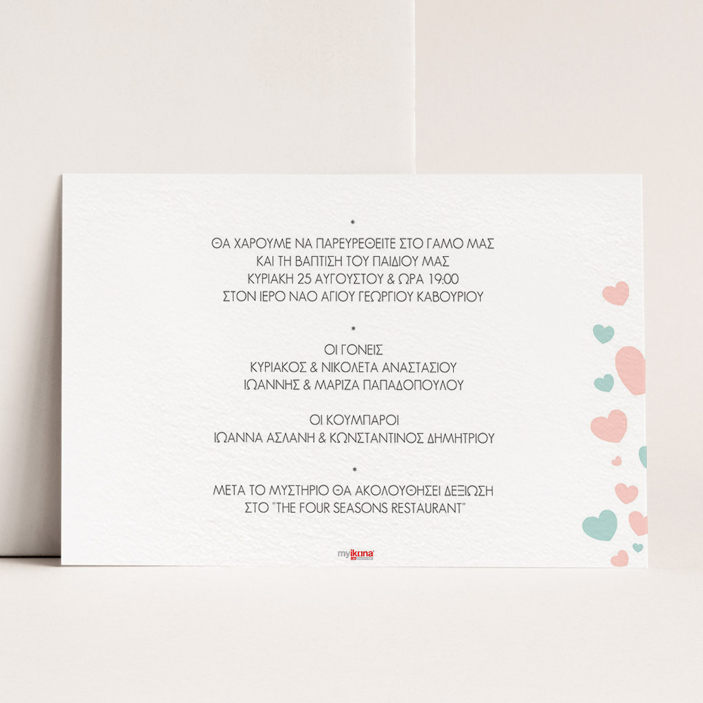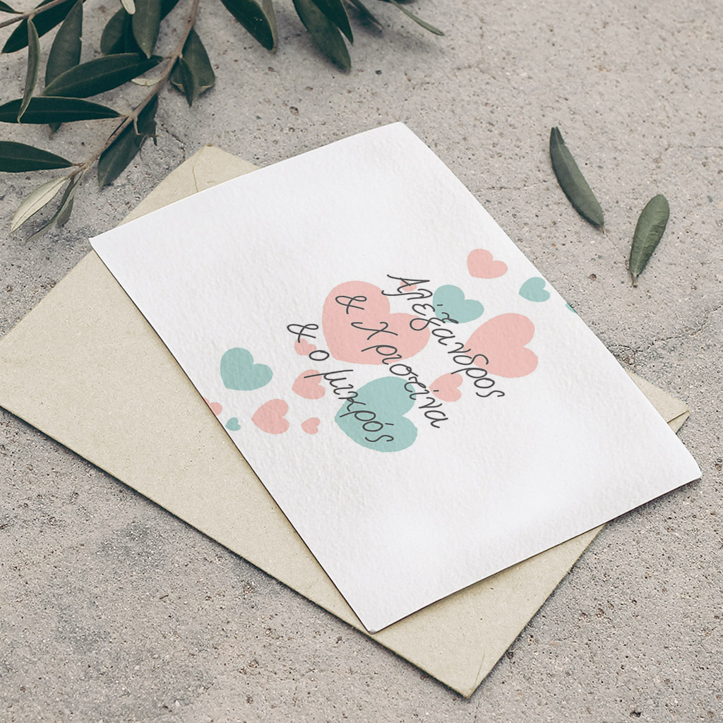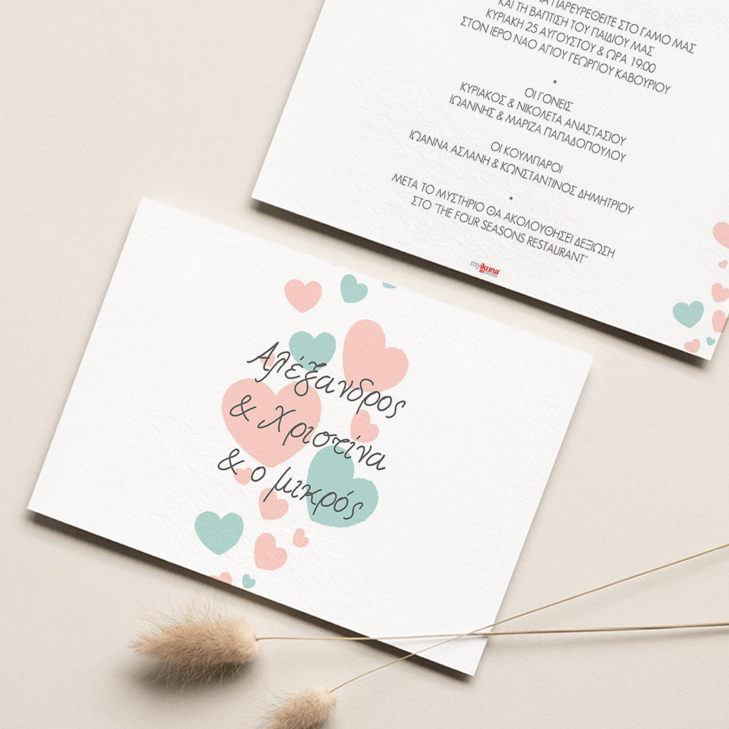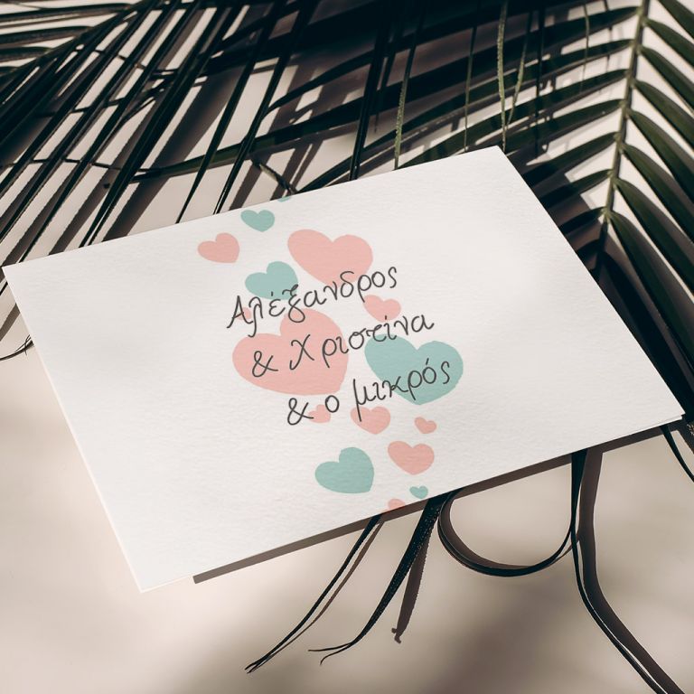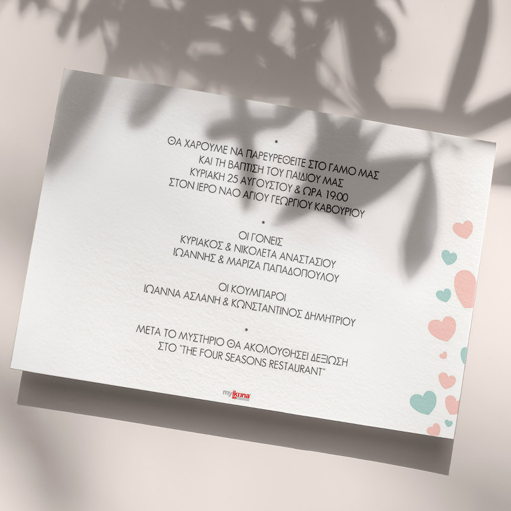 • Προσαρμοσμένες Επιλογές: Τύπος, σχήμα, και διάσταση είναι οι διαθέσιμες επιλογές για να φτιάξετε το τέλειο προσκλητήριο.