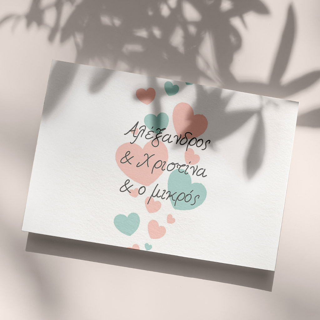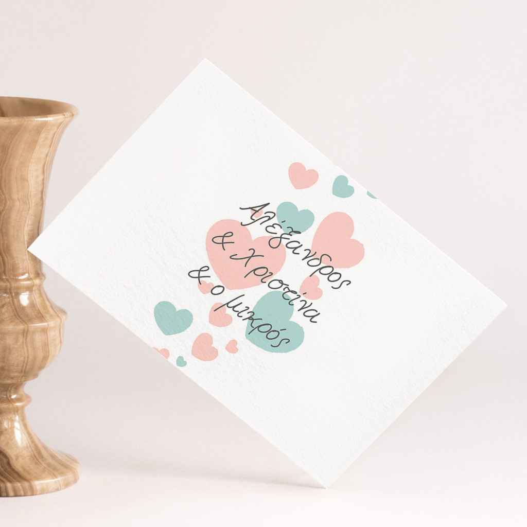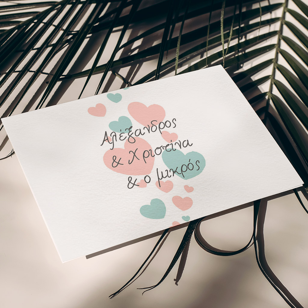 Δημιουργήστε ένα προσκλητήριο με τα στοιχεία σας και επιλέξτε ποσότητα 1 τεμαχίου, ώστε να το δημιουργήσουμε και να σας το αποστείλουμε πριν την τελική εκτύπωση με κόστος μόνο 9,95€.