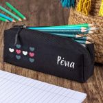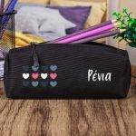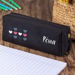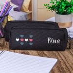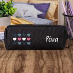 Σχολική Κασετίνα με Όνομα, σε Μαύρο Χρώμα & Σχέδιο Heart Pattern