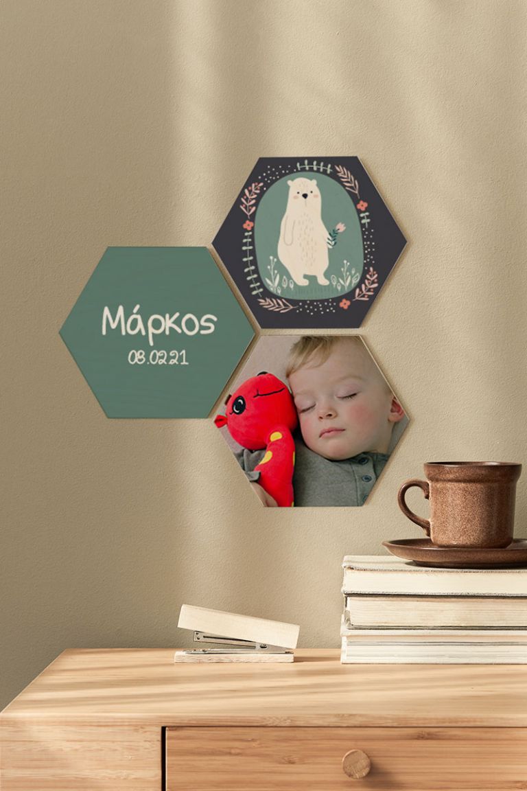 Φτιάξε online σε 1’ τα δικά σου Hex & δώσε ζωή στο χώρο σου! Κόλλησέ τα πανεύκολα στον τοίχο σου με την ειδική τους κόλλα (χωρίς καρφιά & τρύπες). Τα hex είναι εκτυπωμένα σε ξύλο για να ταιριάζουν σε κάθε χώρο!