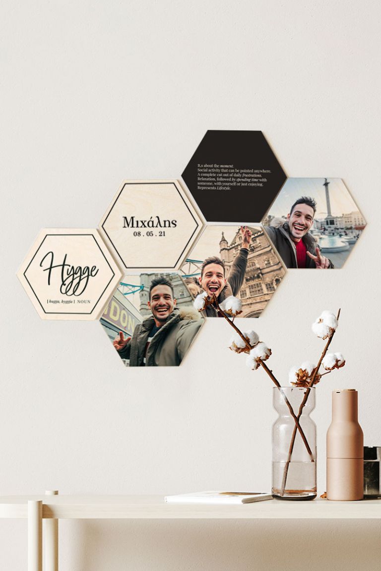 Φτιάξε online σε 1’ τα δικά σου Hex & δώσε ζωή στο χώρο σου! Κόλλησέ τα πανεύκολα στον τοίχο σου με την ειδική τους κόλλα (χωρίς καρφιά & τρύπες). Τα hex είναι εκτυπωμένα σε ξύλο για να ταιριάζουν σε κάθε χώρο!