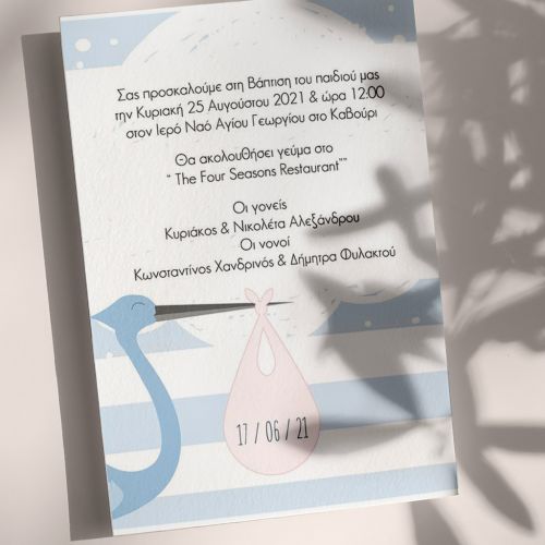 Κάθε λεπτομέρεια μετράει στην πιο όμορφη στιγμή της ζωής σας. Αυτό αντικατοπτρίζεται στα Προσκλητήρια Βάπτισης με σχέδιο Over the Clouds, τα οποία χρησιμοποιούν υψηλής ποιότητας ιταλικό χαρτί και Myikona High Definition εκτύπωση. Δημιουργήστε εύκολα, γρήγορα και οικονομικά τα δικά σας προσκλητήρια!