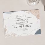 Αποκτήστε τα προσκλητήρια γάμου με σχέδιο Minimal Elegance. Οι πελάτες μας τα ξεχωρίζουν για το υψηλής ποιότητας ιταλικό χαρτί και την εκτύπωση υψηλής ευκρίνειας Myikona High Definition. Διαθέσιμα σε διαφορετικές διαστάσεις.