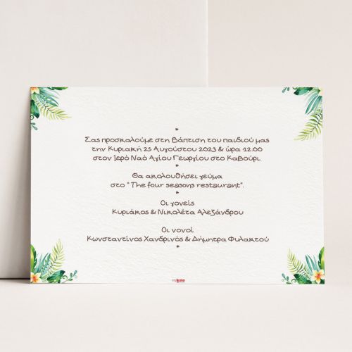 Δημιουργήστε ένα προσκλητήριο με τα στοιχεία σας και επιλέξτε ποσότητα 1 τεμαχίου, ώστε να το δημιουργήσουμε και να σας το αποστείλουμε πριν την τελική εκτύπωση με κόστος μόνο 9,95€.