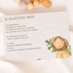 Κάθε λεπτομέρεια μετράει στην πιο όμορφη στιγμή της ζωής σας. Αυτό αντικατοπτρίζεται στα Προσκλητήρια Βάπτισης με σχέδιο Ζωάκια στη Ζούγκλα, τα οποία χρησιμοποιούν υψηλής ποιότητας ιταλικό χαρτί και Myikona High Definition εκτύπωση. Διαθέσιμα σε διαφορετικές διαστάσεις.