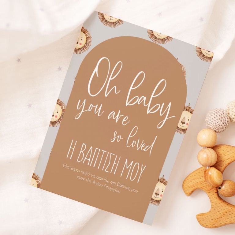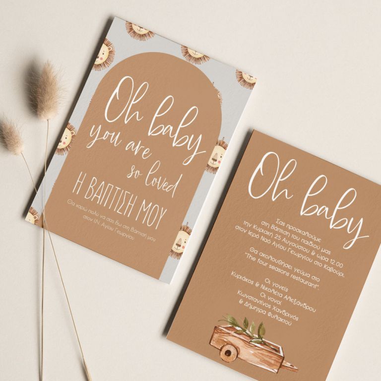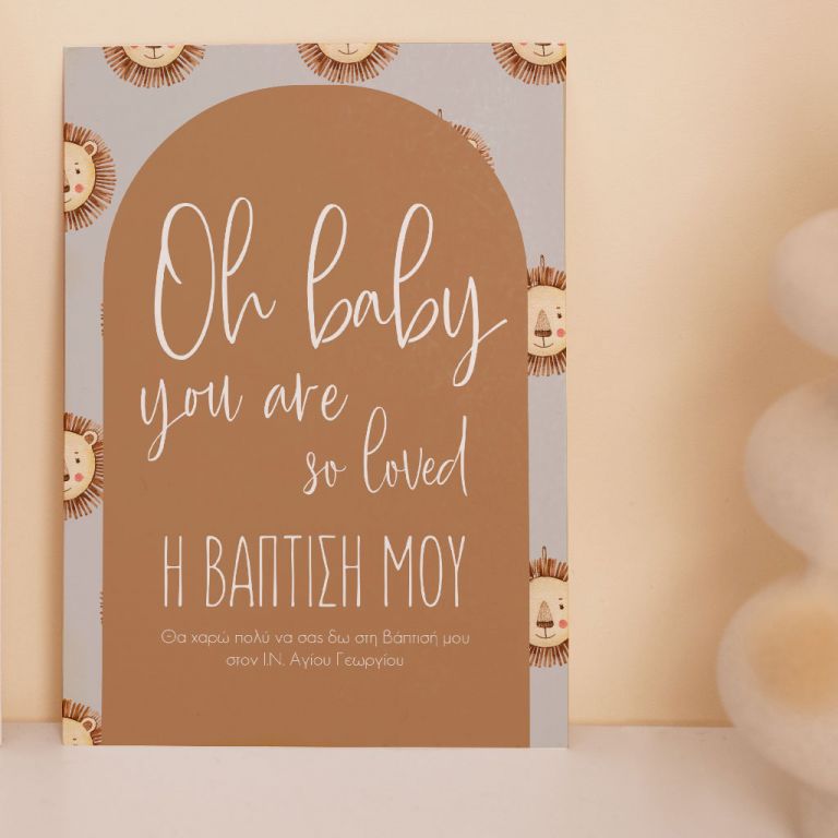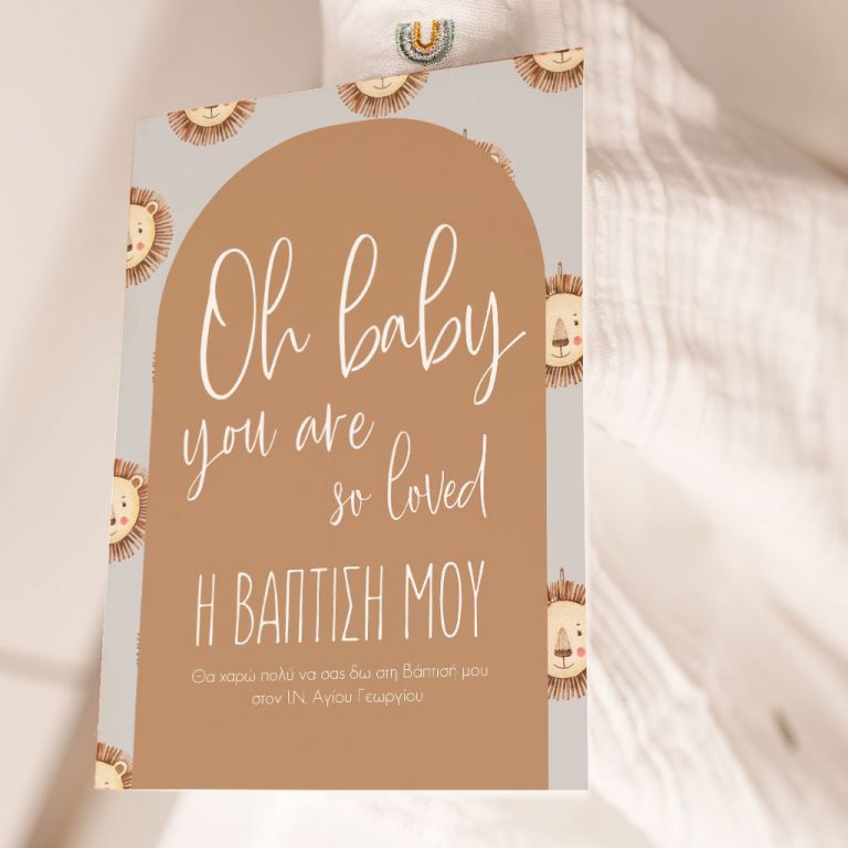 Κάθε λεπτομέρεια μετράει στην πιο όμορφη στιγμή της ζωής σας. Αυτό αντικατοπτρίζεται στα Προσκλητήρια Βάπτισης με σχέδιο Λιονταράκι στο Δάσος, τα οποία χρησιμοποιούν υψηλής ποιότητας ιταλικό χαρτί και Myikona High Definition εκτύπωση. Διαθέσιμα σε διαφορετικές διαστάσεις.