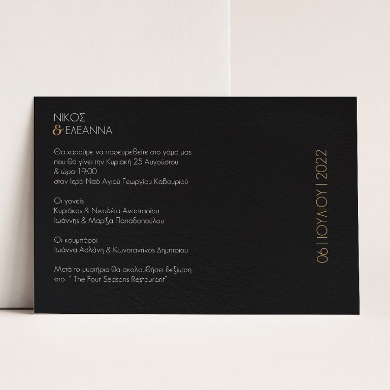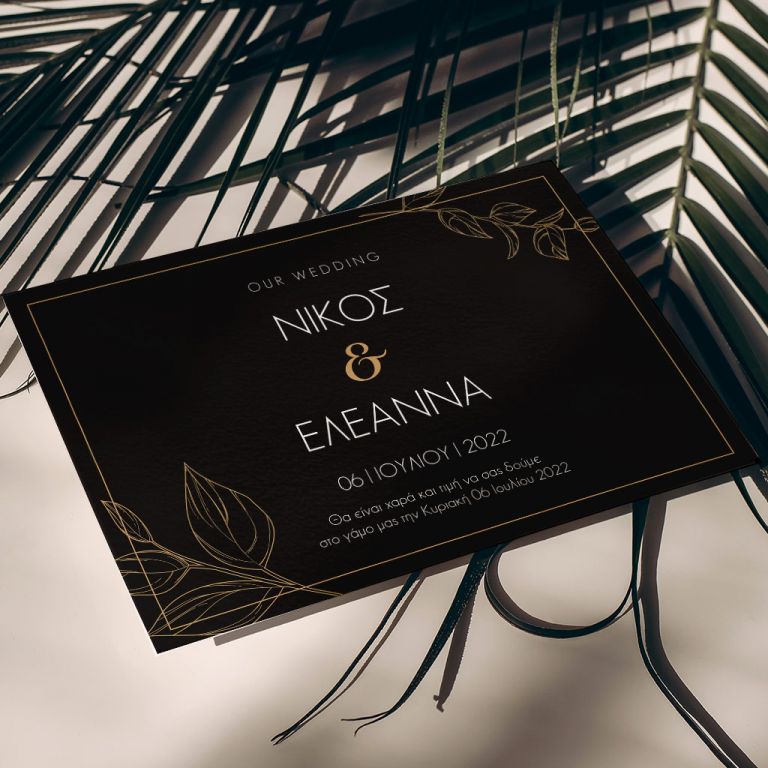 Αποκτήστε τα προσκλητήρια γάμου με σχέδιο Minimal Elegance. Οι πελάτες μας τα ξεχωρίζουν για το υψηλής ποιότητας ιταλικό χαρτί και την εκτύπωση υψηλής ευκρίνειας Myikona High Definition. Διαθέσιμα σε διαφορετικές διαστάσεις.