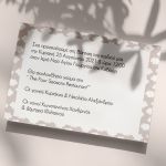 Δημιουργήστε μια πρόσκληση με τα στοιχεία σας και επιλέξτε ποσότητα 1 ώστε να δημιουργήσουμε ένα προσκλητήριο και να σας το αποστείλουμε πριν την τελική εκτύπωση με κόστος μόνο 9,95€.
