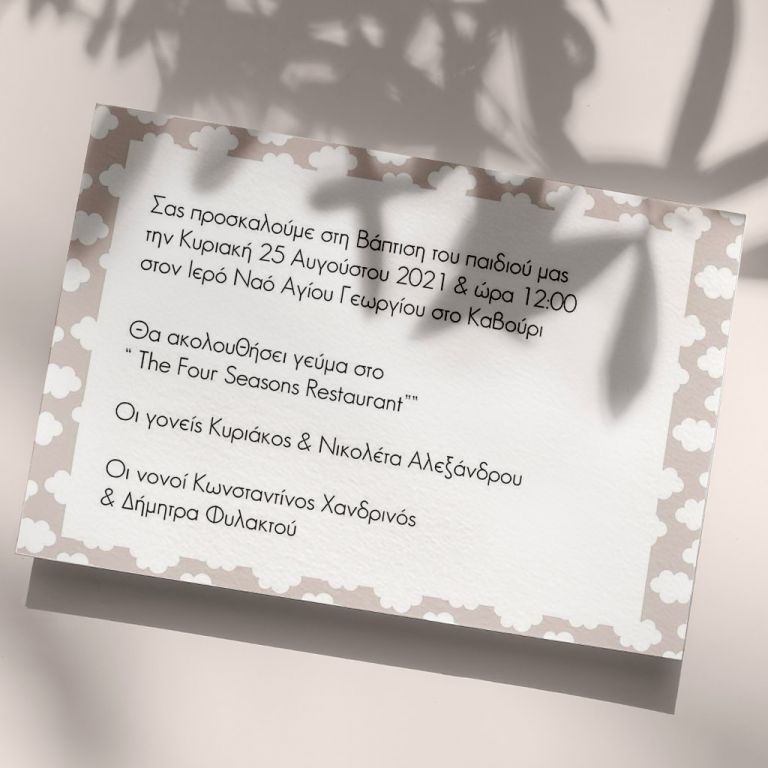 Προσκαλέστε επίσημα τους φίλους, την οικογένεια και τους αγαπημένους σας στο μυστήριο της Βάπτισης του αγοριού σας ή του κοριτσιού σας με το ομορφότερο προσκλητήριο Βάπτισης! Είτε πρόκειται για μια vintage ή ρομαντική Βάπτιση στην Αθήνα, είτε για μια πρωτότυπη Βάπτιση στη Θεσσαλονίκη, θα δημιουργήσετε μια μοναδική πρόσκληση ακριβώς όπως την έχετε ονειρευτεί
