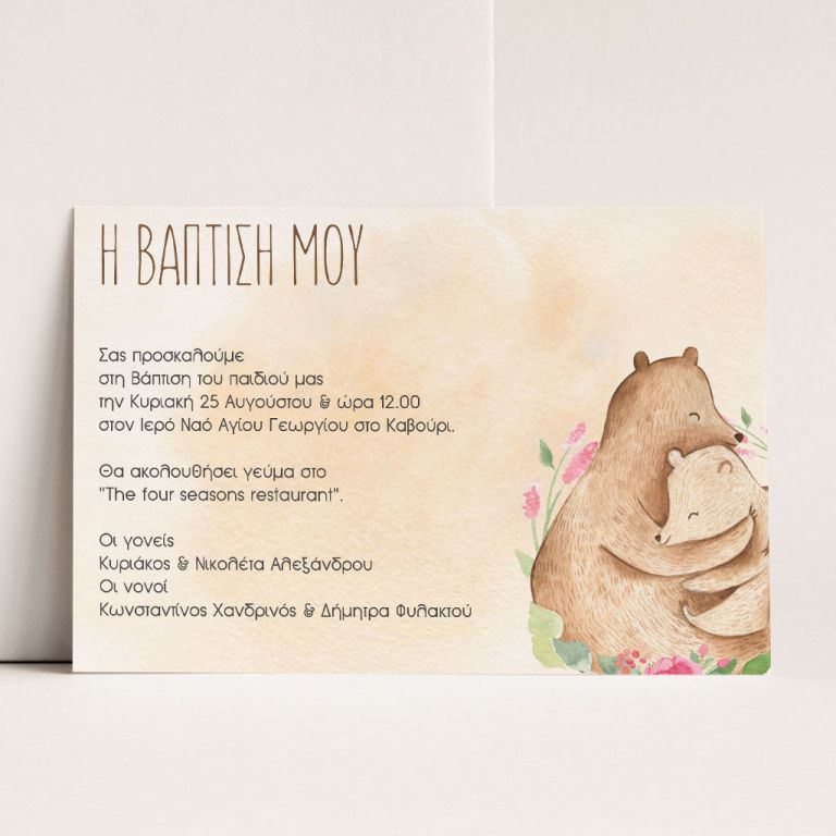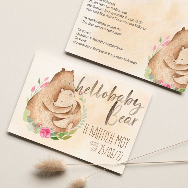 Κάθε λεπτομέρεια μετράει στην πιο όμορφη στιγμή της ζωής σας. Αυτό αντικατοπτρίζεται στα Προσκλητήρια Βάπτισης με σχέδιο Boho Αρκουδάκι, τα οποία χρησιμοποιούν υψηλής ποιότητας ιταλικό χαρτί και Myikona High Definition εκτύπωση. Διαθέσιμα σε διαφορετικές διαστάσεις.