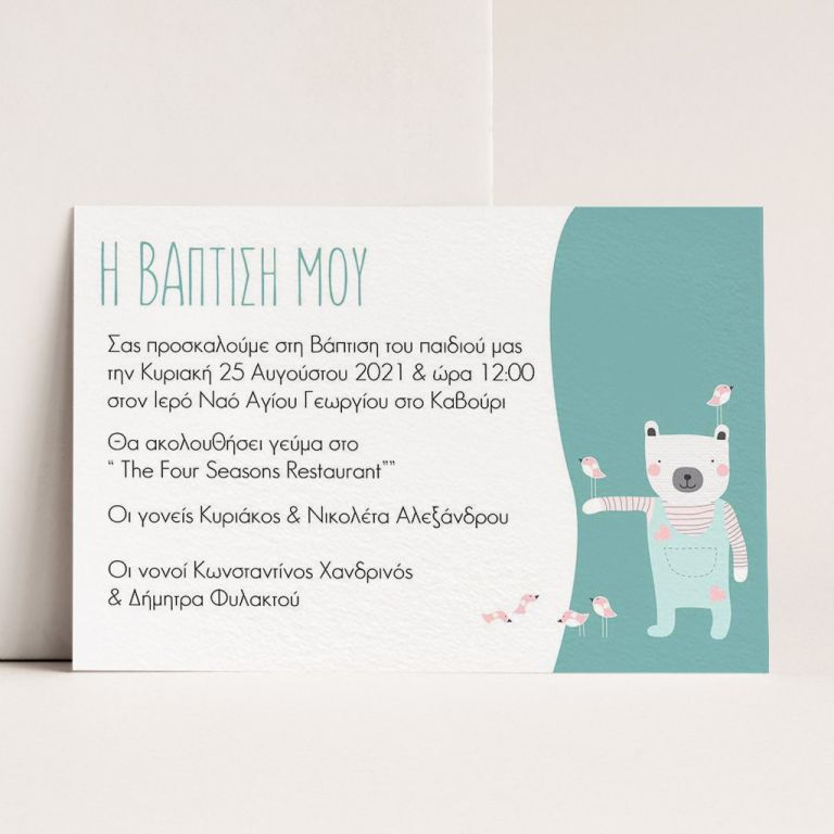 Κάθε λεπτομέρεια μετράει στην πιο όμορφη στιγμή της ζωής σας. Αυτό αντικατοπτρίζεται στα Προσκλητήρια Βάπτισης με σχέδιο Boho Αρκουδάκι, τα οποία χρησιμοποιούν υψηλής ποιότητας ιταλικό χαρτί και Myikona High Definition εκτύπωση. Διαθέσιμα σε διαφορετικές διαστάσεις.