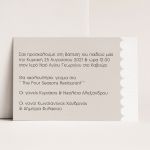 Δημιουργήστε μια πρόσκληση με τα στοιχεία σας και επιλέξτε ποσότητα 1 ώστε να δημιουργήσουμε ένα προσκλητήριο και να σας το αποστείλουμε πριν την τελική εκτύπωση με κόστος μόνο 9,95€.