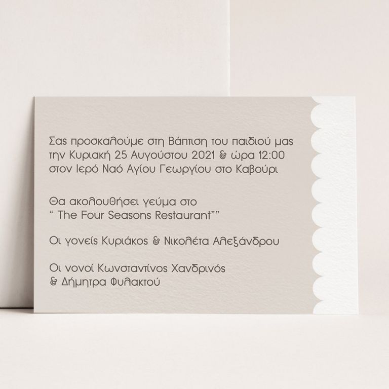 Προσκαλέστε επίσημα τους φίλους, την οικογένεια και τους αγαπημένους σας στο μυστήριο της Βάπτισης του αγοριού σας ή του κοριτσιού σας με το ομορφότερο προσκλητήριο Βάπτισης! Είτε πρόκειται για μια vintage ή ρομαντική Βάπτιση στην Αθήνα, είτε για μια πρωτότυπη Βάπτιση στη Θεσσαλονίκη, θα δημιουργήσετε μια μοναδική πρόσκληση ακριβώς όπως την έχετε ονειρευτεί
