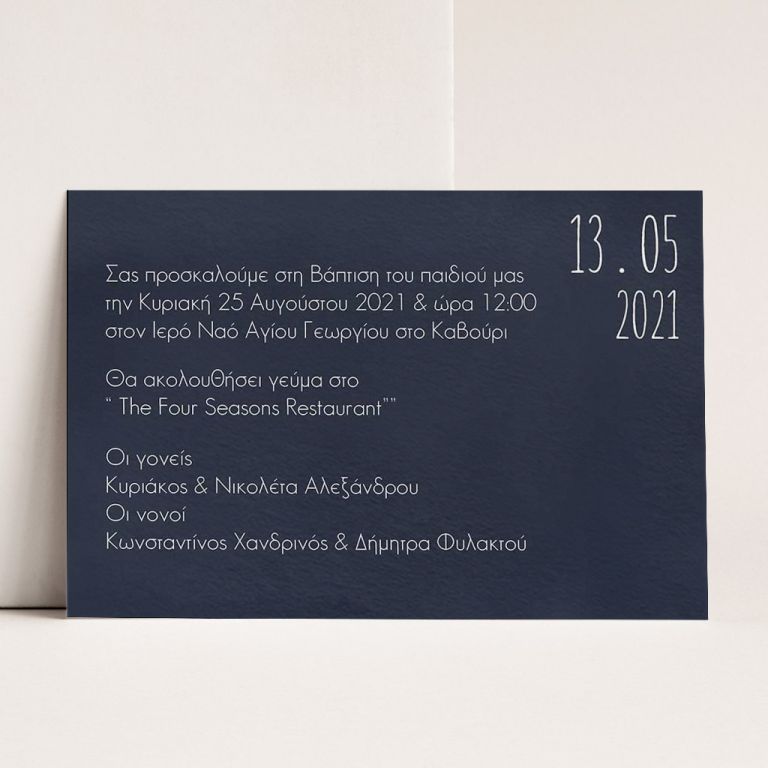 Με εξαιρετικές τιμές, υψηλή αισθητική και κορυφαία τεχνολογία εκτύπωσης, τα προσκλητήριά μας εγγυώνται ότι η πρόσκληση της βάπτισής σας θα αφήσει ένα ανεξίτηλο σημάδι στην καρδιά κάθε καλεσμένου.