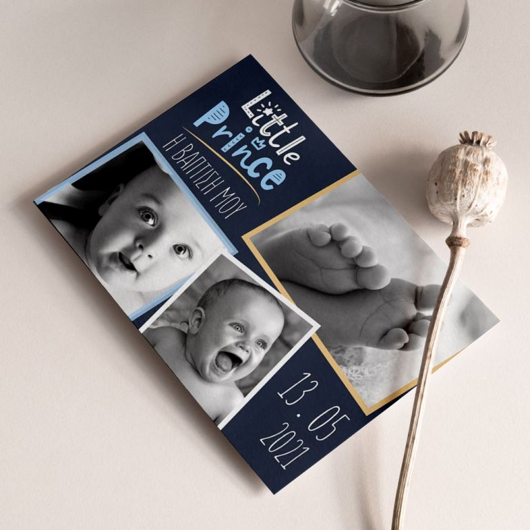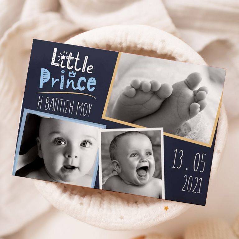 Αποκτήστε τα προσκλητήρια βάπτισης για αγόρι με σχέδιο Little Prince. Ξεχωρίζουν για το ανθεκτικό και ποιοτικό χαρτί τύπου Opalina και την εξαιρετική Myikona High Definition εκτύπωση. Δημιουργήστε εύκολα, γρήγορα και οικονομικά τα δικά σας προσκλητήρια!