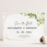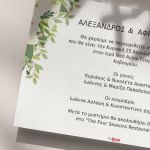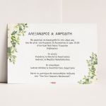 • Διακόσμηση & Σχεδίαση: Τα λευκά λουλούδια και τα πράσινα φύλλα συνδυάζουν τα απαλά χρώματα της φύσης, για να ομορφύνουν με κομψότητα το προσκλητήριό σας.