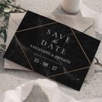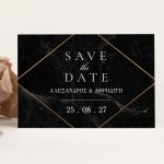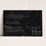• Διακόσμηση & Σχεδίαση: Το μαύρο φόντο συνδυάζεται με διακριτικές λευκές κυματιστές γραμμές, που κάνουν το προσκλητήριό σας να μοιάζει με μάρμαρο, δίνοντας του απαράμιλλη κομψότητα και ομορφιά.