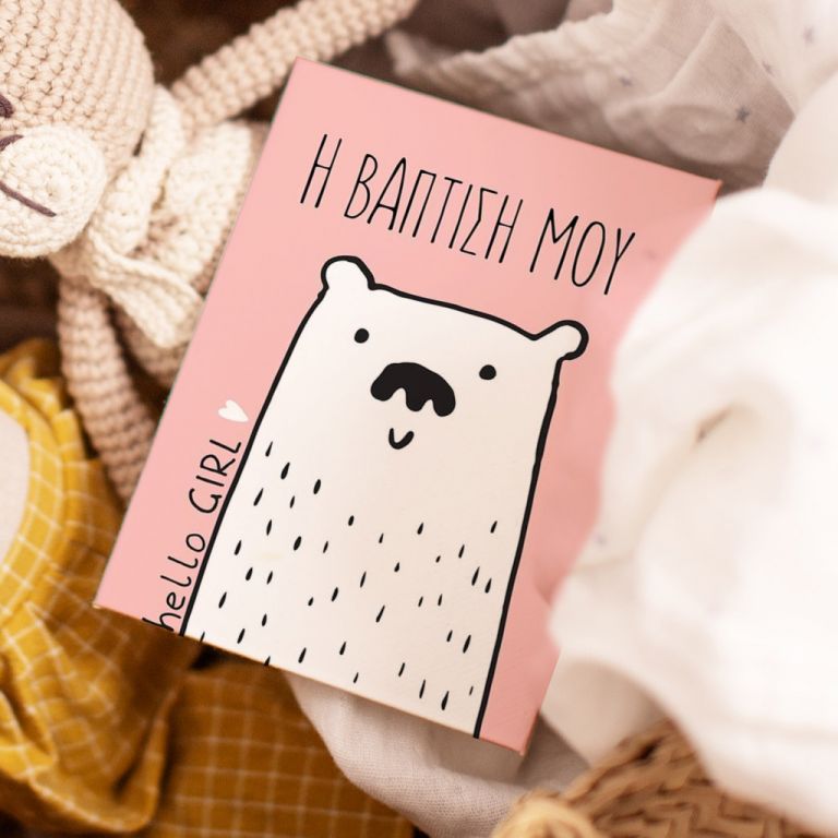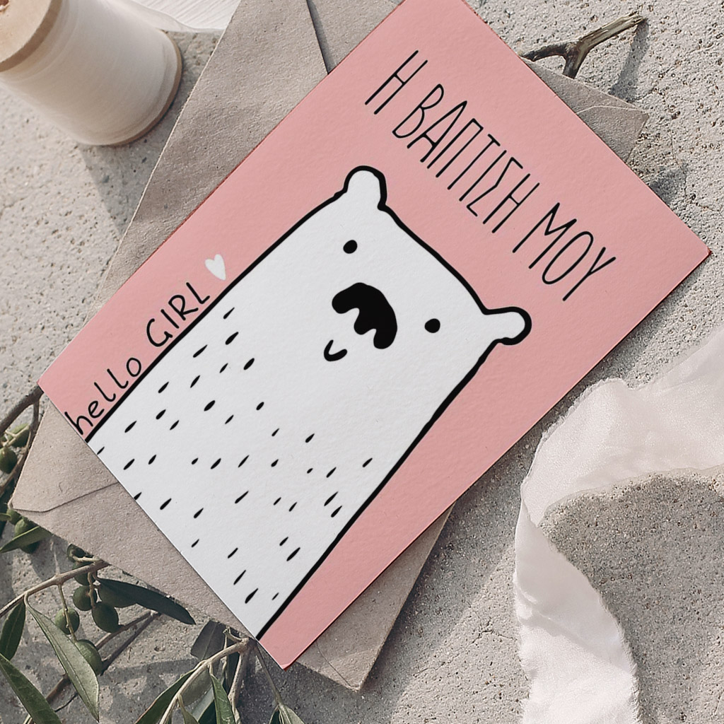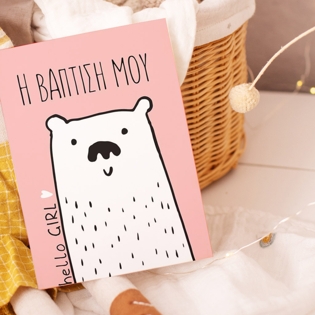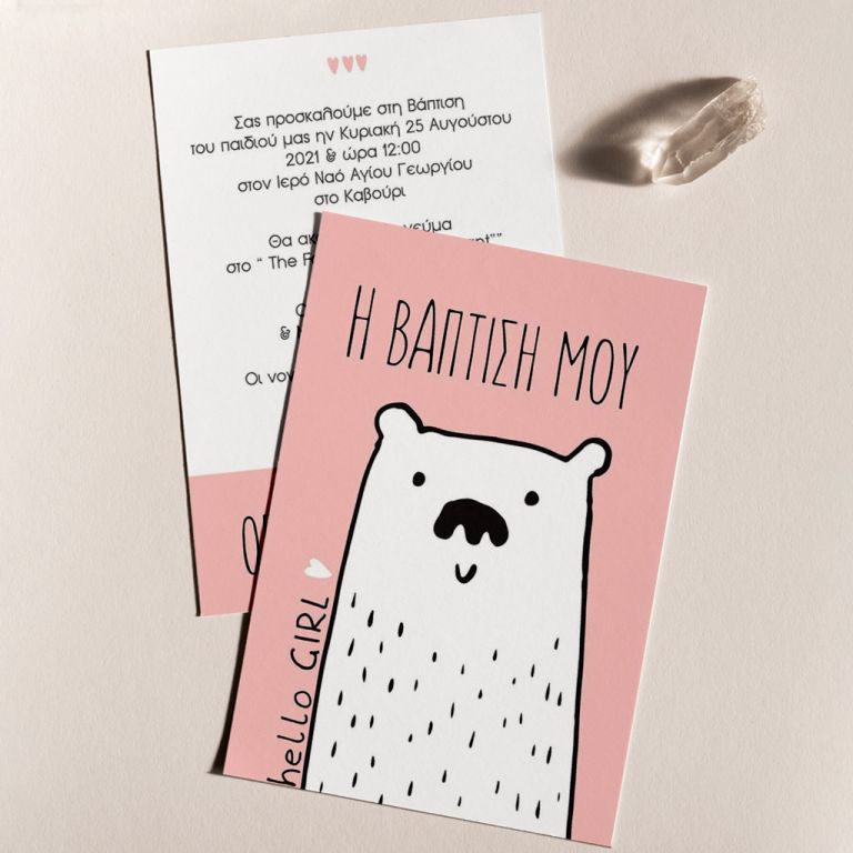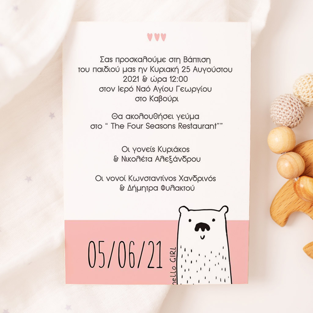 Πρόσκληση Βάπτισης με Σχέδιο Pink Bear