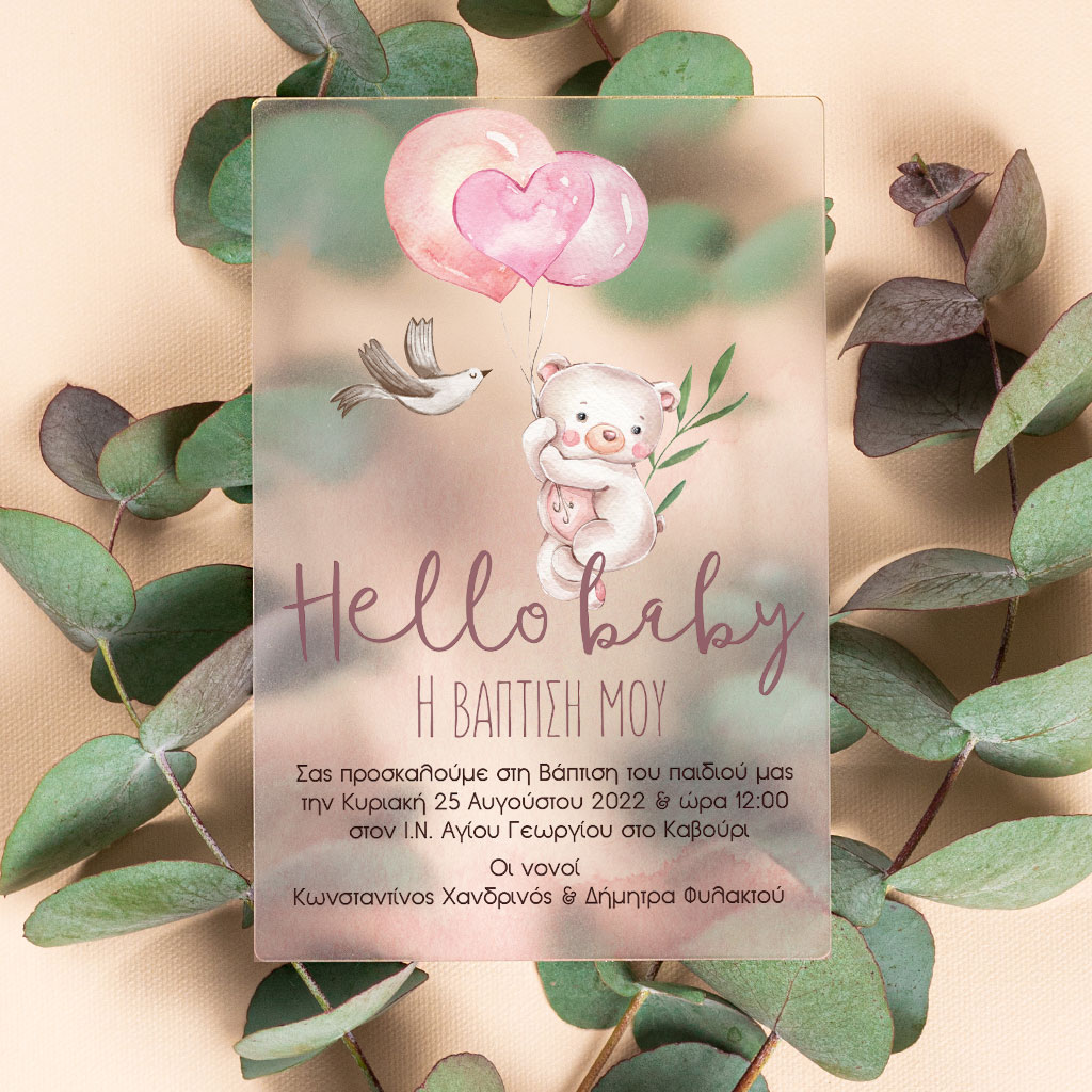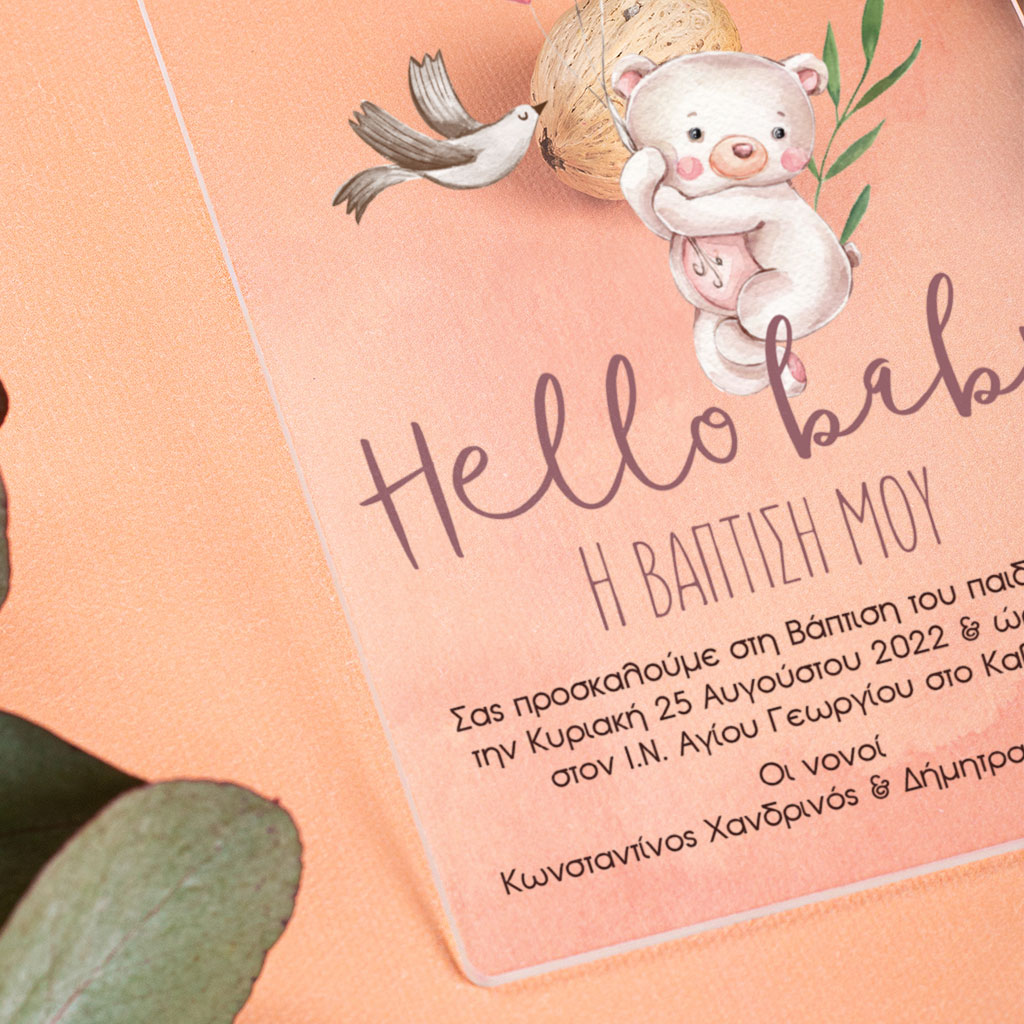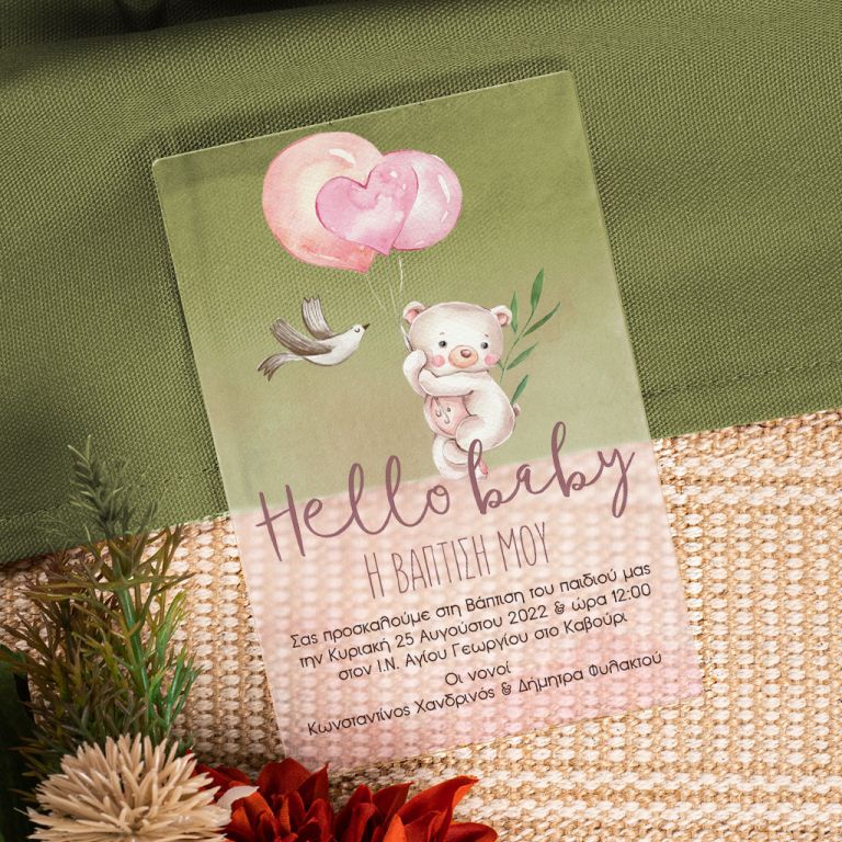 Πρόσκληση Βάπτισης με Σχέδιο Lovely Baby Bear