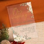 Τα προσκλητήρια γάμου plexiglass με σχέδιο Our Wedding Celebration αντανακλούν το πάθος μας για κομψότητα και τη δέσμευσή μας για απαράμιλλη ποιότητα.
