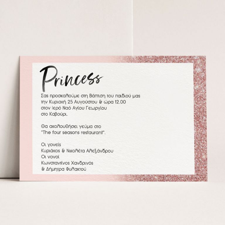 Πρόσκληση Βάπτισης με Σχέδιο Shining Princess