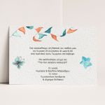 Δημιουργήστε μια πρόσκληση με τα στοιχεία σας και επιλέξτε ποσότητα 1 ώστε να δημιουργήσουμε ένα προσκλητήριο και να σας το αποστείλουμε πριν την τελική εκτύπωση με κόστος μόνο 9,95€.