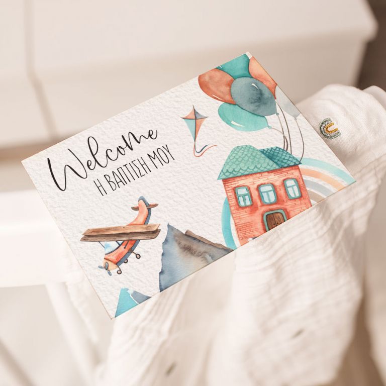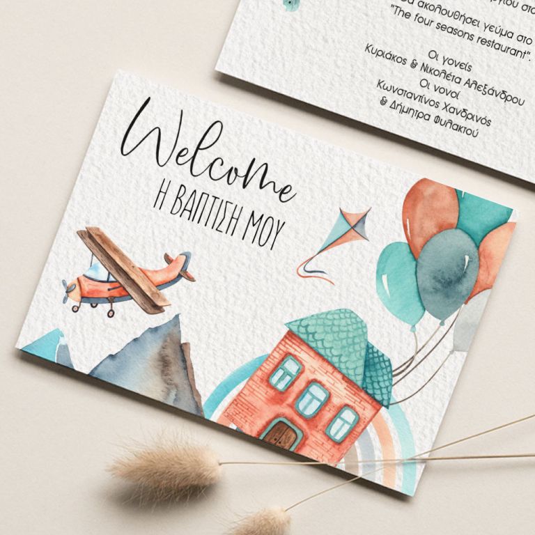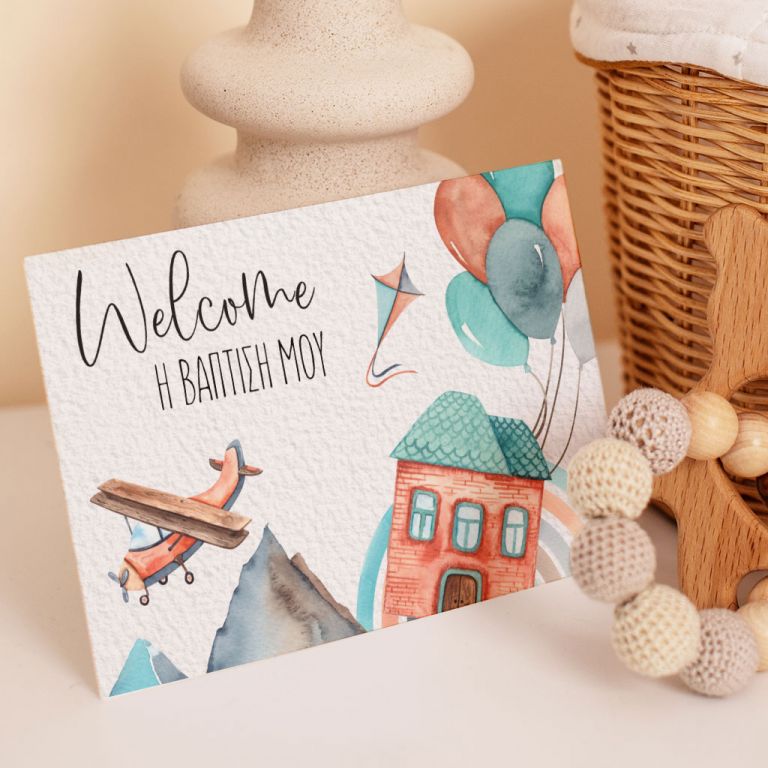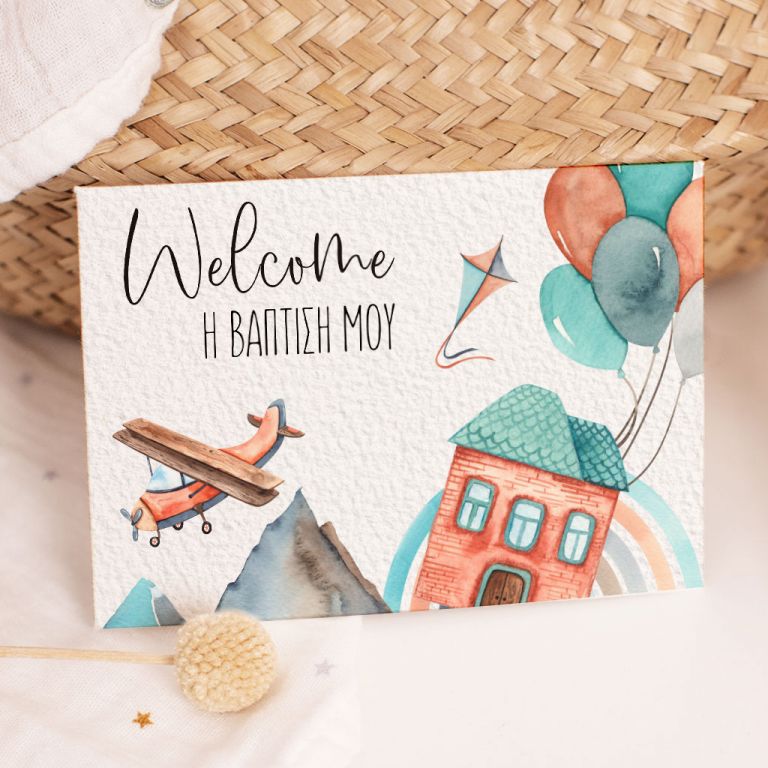 Πρόσκληση Βάπτισης με Σχέδιο Travel Me Baby