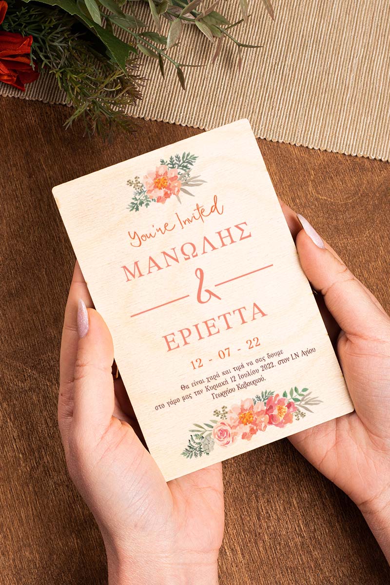 Αποκτήστε τα προσκλητήρια γάμου με σχέδιο Boho Κόκκινα Λουλούδια. Οι πελάτες μας τα ξεχωρίζουν για το υψηλής ποιότητας ιταλικό χαρτί και την εκτύπωση υψηλής ευκρίνειας Myikona High Definition. Διαθέσιμα σε διαφορετικές διαστάσεις.