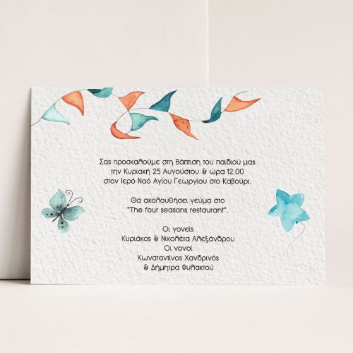 Προσκαλέστε επίσημα τους φίλους, την οικογένεια και τους αγαπημένους σας στο μυστήριο της Βάπτισης του αγοριού σας ή του κοριτσιού σας με το ομορφότερο προσκλητήριο Βάπτισης! Είτε πρόκειται για μια vintage ή ρομαντική Βάπτιση στην Αθήνα, είτε για μια πρωτότυπη Βάπτιση στη Θεσσαλονίκη, θα δημιουργήσετε μια μοναδική πρόσκληση ακριβώς όπως την έχετε ονειρευτεί