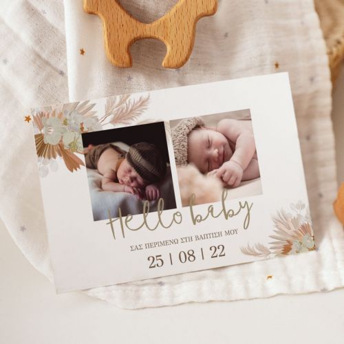 Προσκαλέστε επίσημα τους φίλους, την οικογένεια και τους αγαπημένους σας στο μυστήριο της Βάπτισης του αγοριού σας ή του κοριτσιού σας με το ομορφότερο προσκλητήριο Βάπτισης! Είτε πρόκειται για μια vintage ή ρομαντική Βάπτιση στην Αθήνα, είτε για μια πρωτότυπη Βάπτιση στη Θεσσαλονίκη, θα δημιουργήσετε μια μοναδική πρόσκληση ακριβώς όπως την έχετε ονειρευτεί