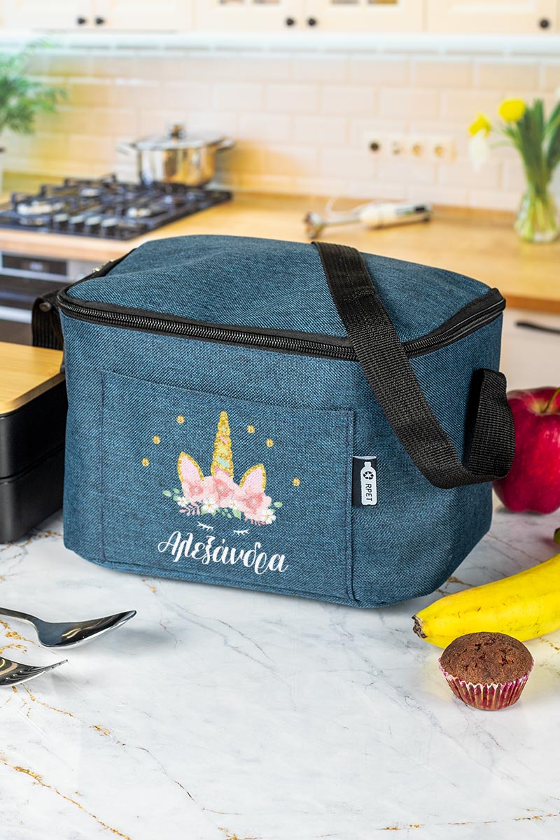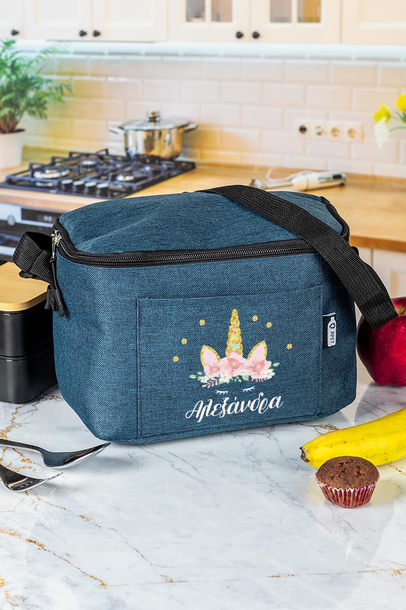 Προσωποποιημένο ισοθερμικό τσαντάκι φαγητού με το όνομα του παιδιού & μπροστινή τσέπη. Γράφει το όνομά του για να μην το χάσει ή το μπερδέψει!