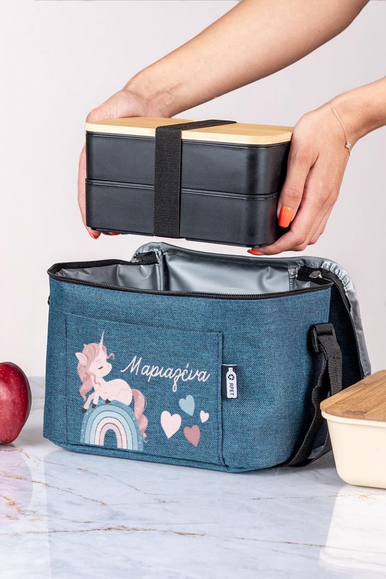 Προσωποποιημένο ισοθερμικό τσαντάκι φαγητού με το όνομα του παιδιού & μπροστινή τσέπη. Γράφει το όνομά του για να μην το χάσει ή το μπερδέψει!