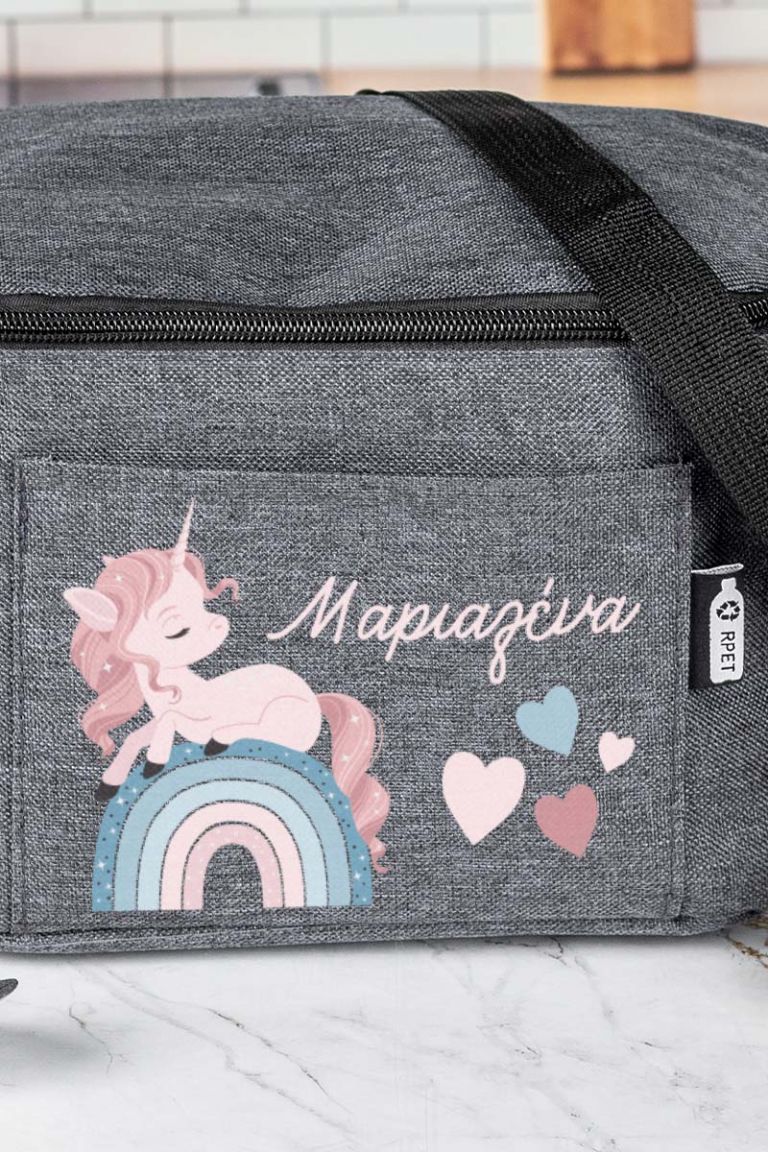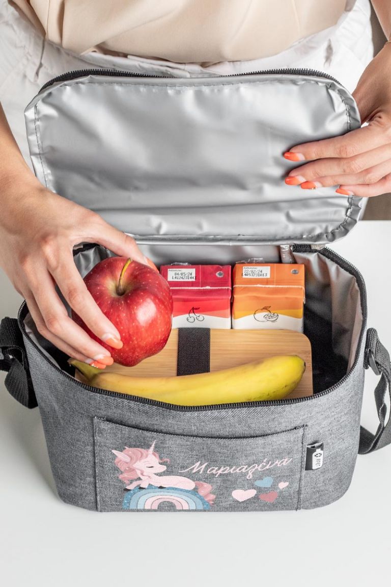 Προσωποποιημένο ισοθερμικό τσαντάκι φαγητού με το όνομα του παιδιού & μπροστινή τσέπη. Γράφει το όνομά του για να μην το χάσει ή το μπερδέψει!