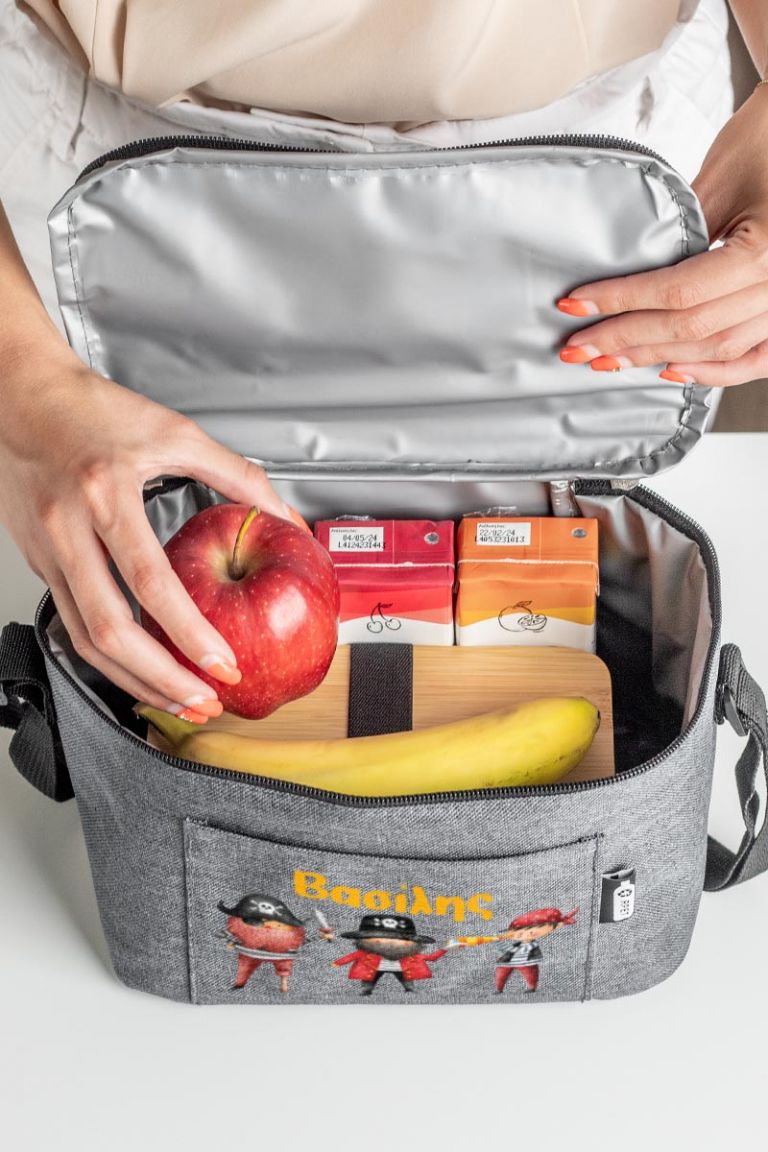 Προσωποποιημένο ισοθερμικό τσαντάκι φαγητού με το όνομα του παιδιού & μπροστινή τσέπη. Γράφει το όνομά του για να μην το χάσει ή το μπερδέψει!