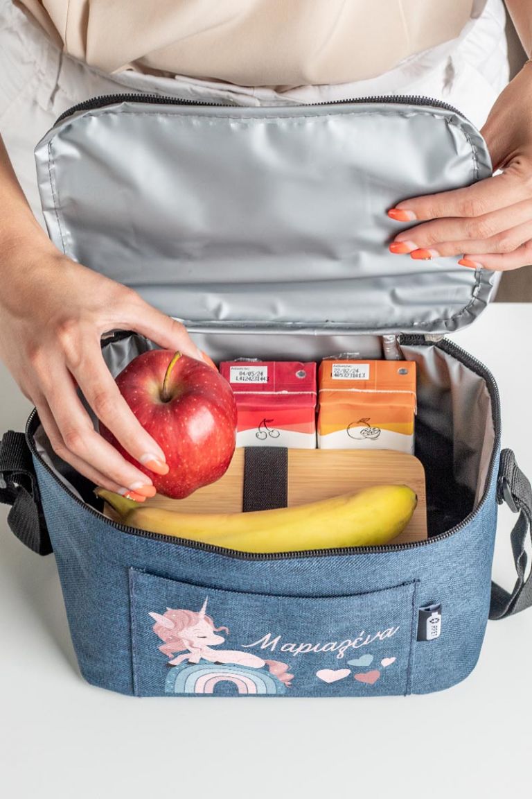 Προσωποποιημένο ισοθερμικό τσαντάκι φαγητού με το όνομα του παιδιού & μπροστινή τσέπη. Γράφει το όνομά του για να μην το χάσει ή το μπερδέψει!